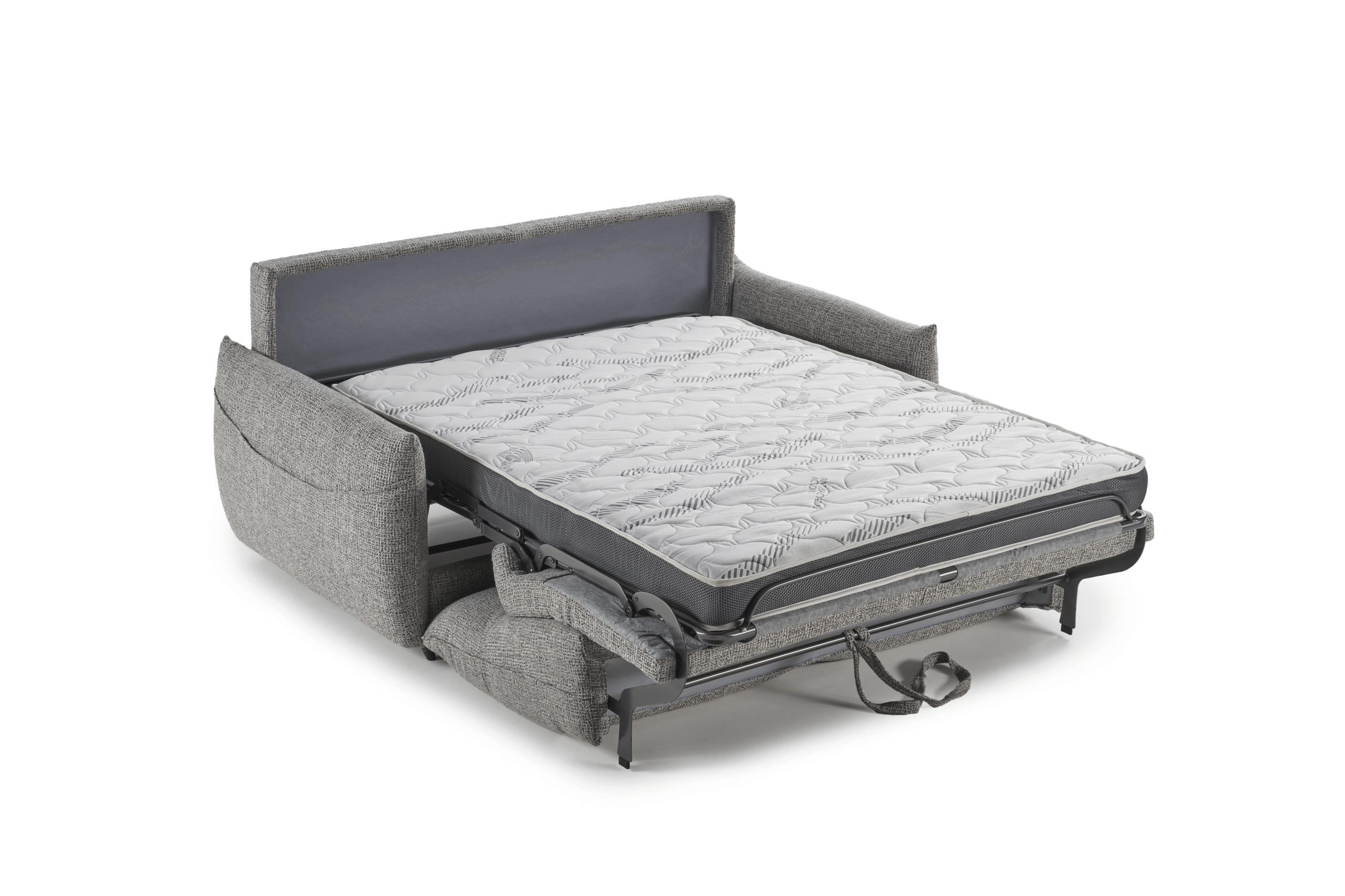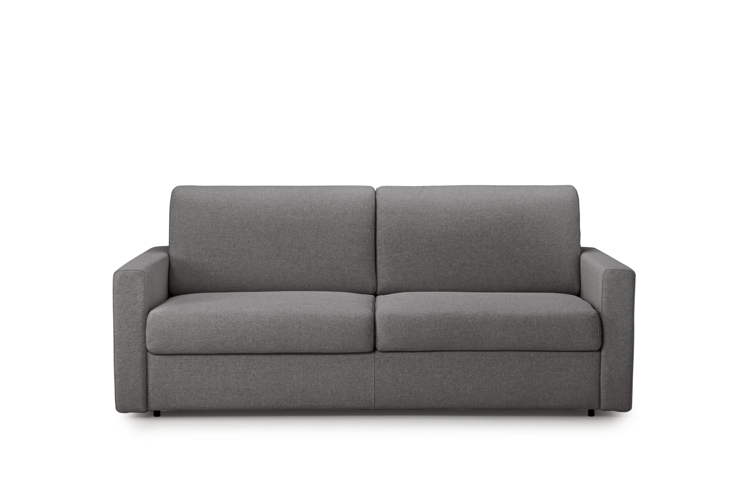 Canapé convertible Dylan 2 places avec couchage 120 cm, doté d’un matelas haute résilience 17 cm, têtières réglables et accoudoirs avec rangement. Confort premium et praticité au quotidien.
