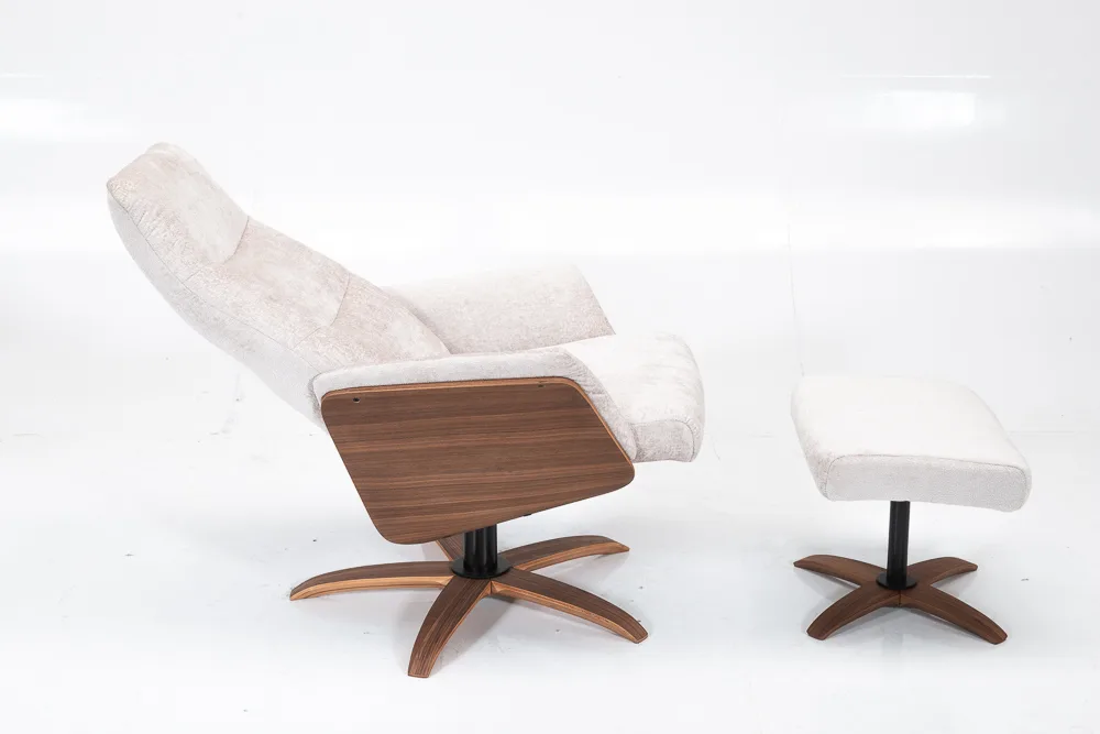 Le fauteuil HK 3462 séduit par son style inspiré du design scandinave : lignes épurées, revêtement chaleureux, et une coque en bois cintré qui lui confère une élégance naturelle. Accompagné de son repose-pieds assorti, il transforme n’importe quel coin lecture ou salon en véritable bulle de confort.