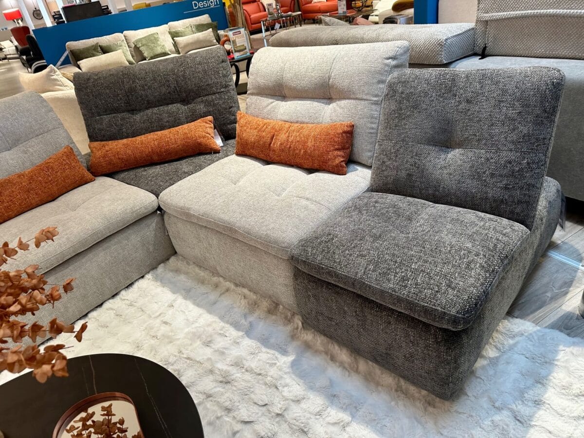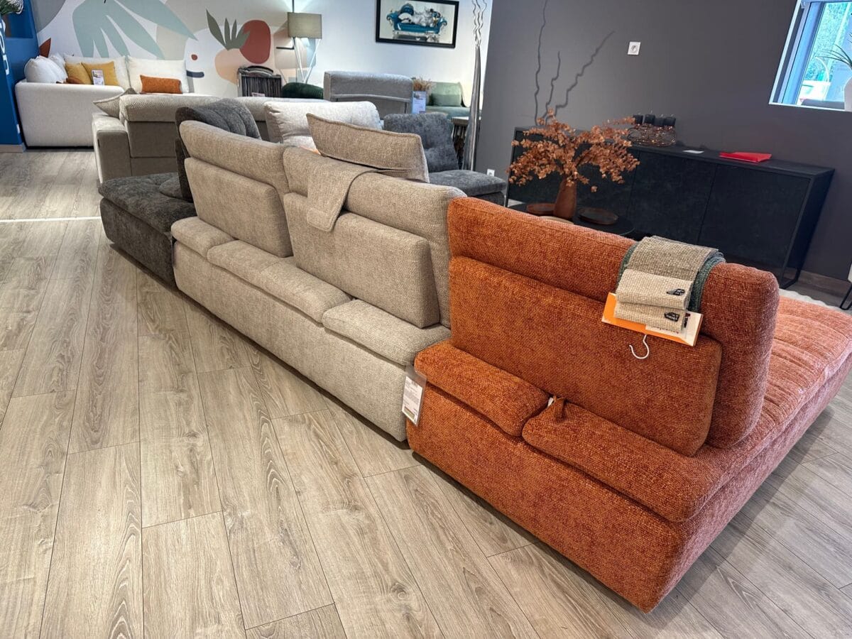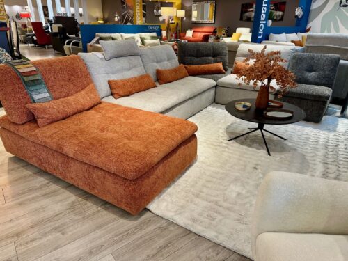 CANAPE PANORAMIQUE AVEC DOSSIER AVANCE-RECULEDossiers avance-recule sur : la chaise longue, banquette 3 places et la chauffeuse 1 placePouf avec dossier relevable afin d’apporter une vrai place supplémentaireModule d’angle : Dossier posé qui permet de transformer le module en pouf ou de choisir la profondeur de l’assise à l’infini.Descriptif : Structure en pin massif et panneaux multiplis. Suspension sangles élastiques entrecroisées de haute résistance. Garnissage assise en polyuréthane densité 30 kg/m3 et couche de ouate de dacron densité 200 g/m² .Garnissage couette capitonnée en polyuréthane densité 22 kg/m3 et couche de ouate de dacron densité 300 g/m² .Garnissage dossier en polyuréthane densité 22 kg/m3 et couche de ouate de dacron densité 300 g/m² .Pieds en plastique hauteur 4 cm.