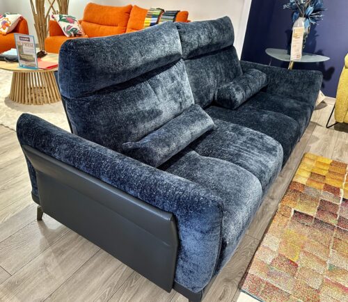Revêtement en tissu velours côtelé bleu nuit combiné à des empiècements en cuir bleu nuit, pour une allure élégante et contemporaine.